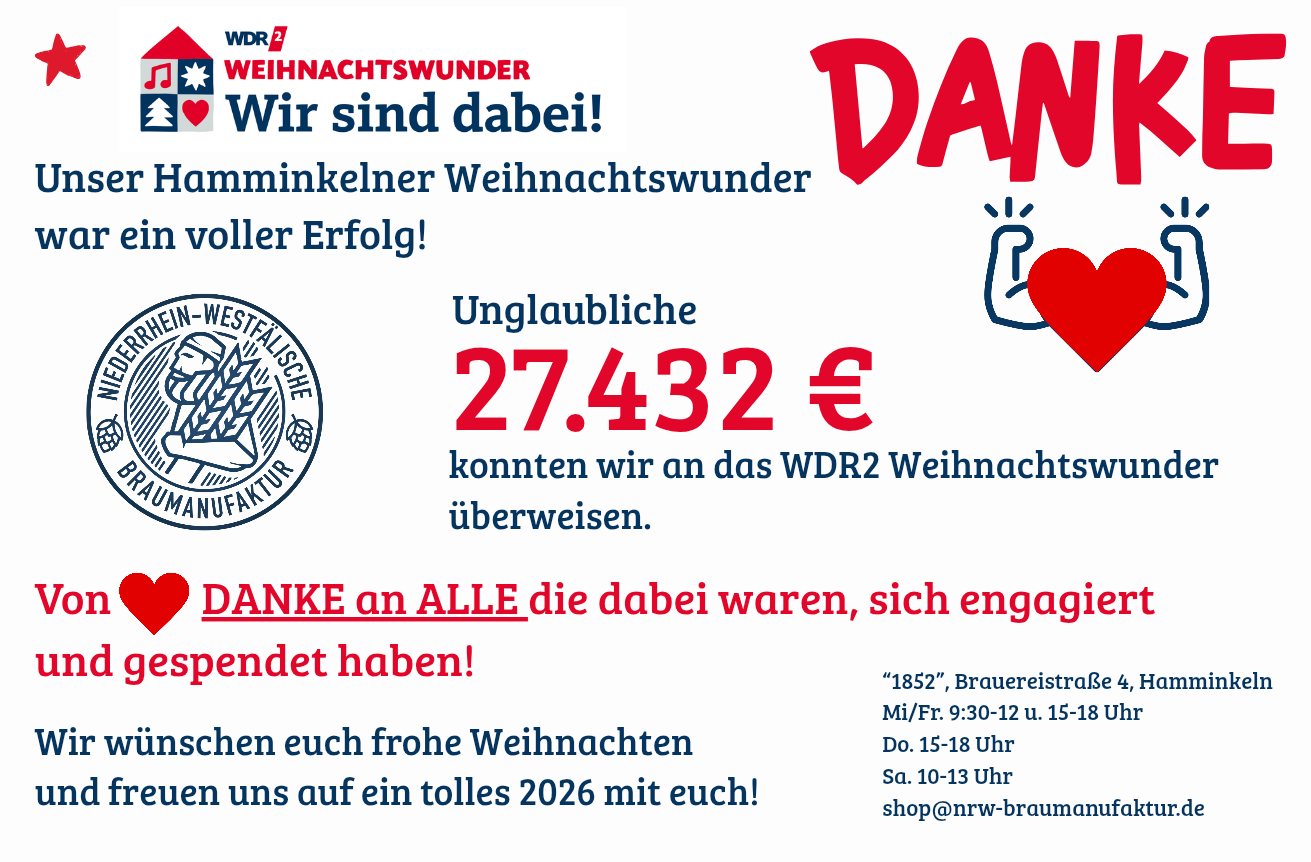 Zeit für neue regionale Spezialitäten am Niederrhein und in Westfalen. Daher kam die Idee, eine neue Brauerei zu gründen, die kreativ die regionale Bierkultur wiederbeleben wird. Ziel ist eine Braustätte zu schaffen, die alte Sorten der Region wieder beleben und neue Spezialitäten entwickeln kann. Durch Braukurse in dem neu gebauten Seminarbereich sollen Bierliebhaberinnen und Bierliebhaber die alte Tradition des Hausbrauens wiederentdecken.